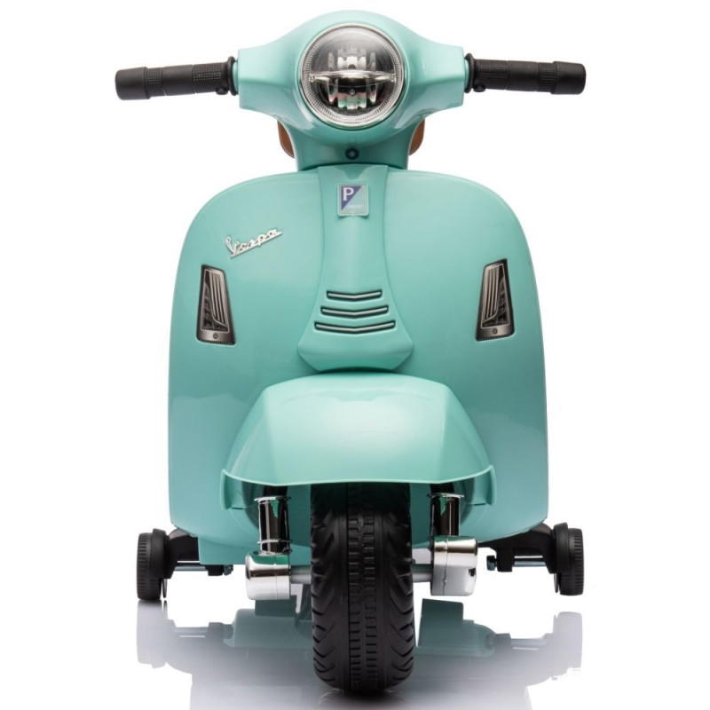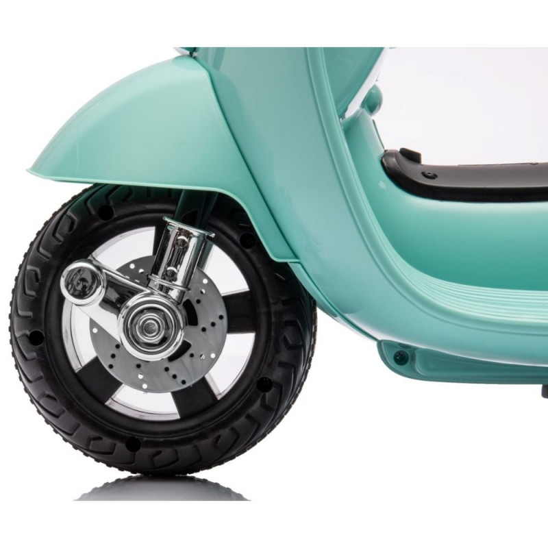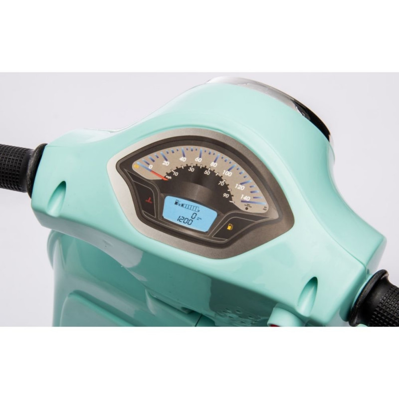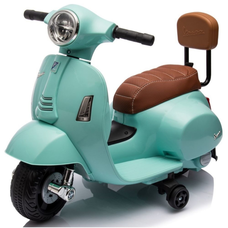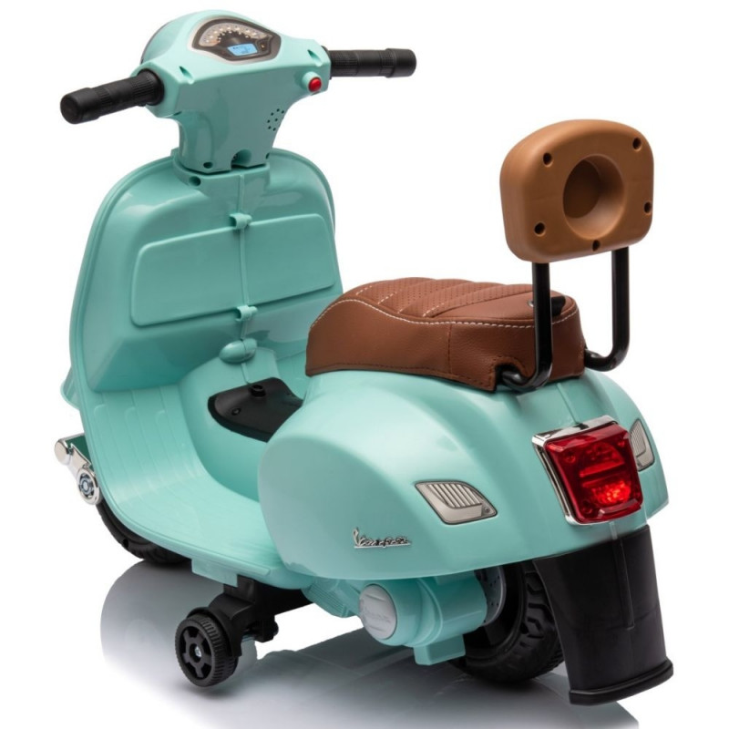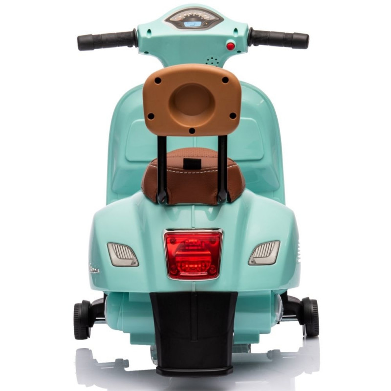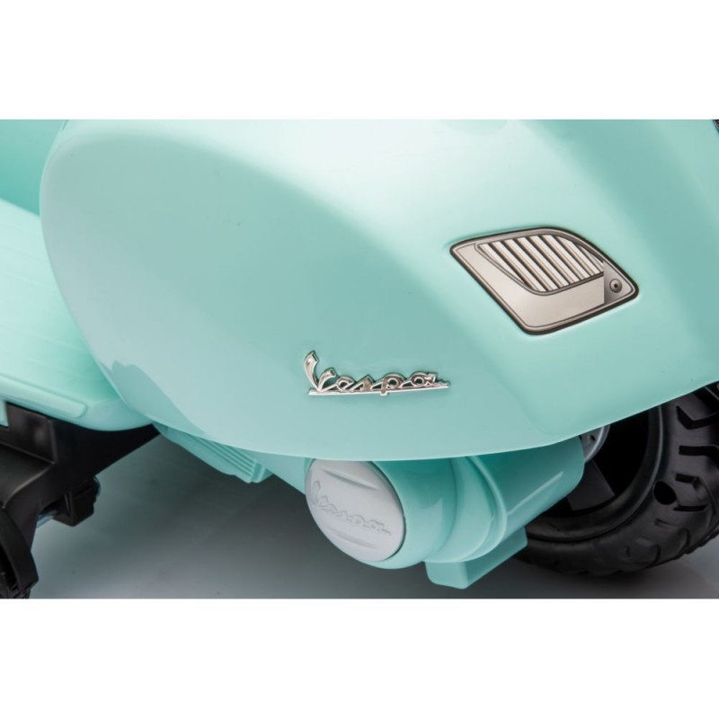 Jeździk akumulatorowy Scooter Vespa z siedzeniem z ekoskóry z przeszyciem i oparciem - turkusowy