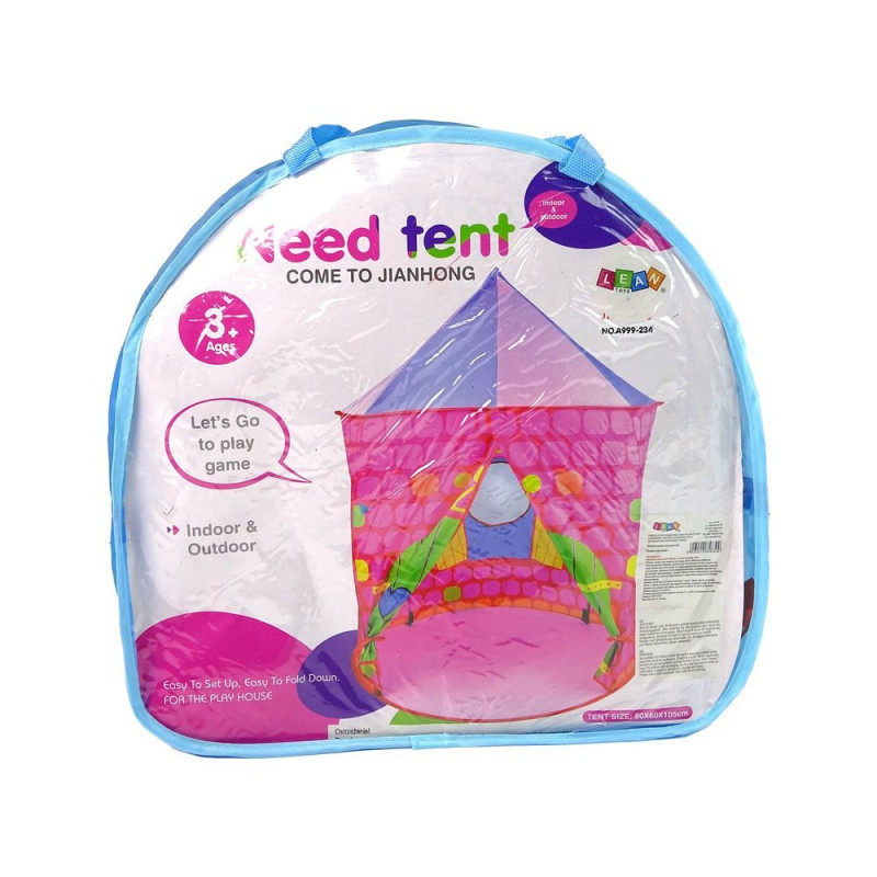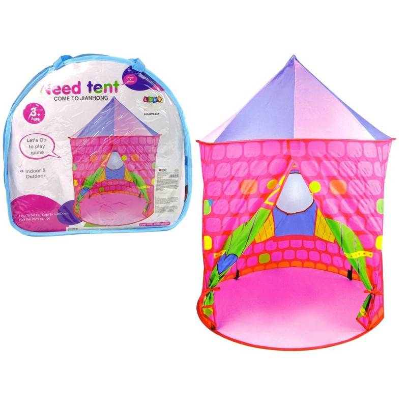 Namiot w pięknym różowym kolorze z charakterystycznymi elementami zamku stanie się ulubionym miejscem zabawy w domu i w ogrodzie. Dzięki stabilnemu stelażowi i wodoodpornej tkaninie z poliestru jest bezpieczny i wygodny w użytkowaniu. Wejście do namiotu można związać po bokach, co ułatwia wchodzenie i wychodzenie, a okrągła podstawa gwarantuje brak ostrych krawędzi.