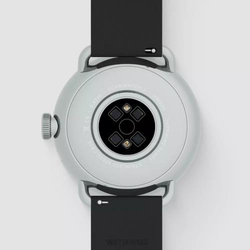 <b>The watch that changes lives<br>Discover ScanWatch 2.</b><br>Incredible clinical power to improve health.<br>Phenomenal 30-day battery.<br><br><b>Perform a medical-grade ECG</b><br>Detect a potential cardiac anomaly and get a cardiovascular assessment in 30 seconds<br><br><b>May indicate the onset of an illness</b><br>by tracking day and night body temperature variations<br><br><b>Assesses part of your respiratory system</b><br>by measuring blood oxygen levels<br><br><b>On your wrist.<br>On top of what’s important.</b><br>Boosted with our exclusive TempTech24/7 Module, a new multi-wavelength PPG, and combined with our upgraded operating software, ScanWatch 2 revolutionizes daily care by tracking useful health data and notifying you in case of a baseline shift.<br><br><b>Day & night temp tracking</b><br>For the first time a health wearable offers your baseline day and night temperature fluctuations, which may indicate the onset of an illness or other health condition, and boost your ability to manage performance and recovery via workout temperature variation zones.<br><br><b>TempTech24/7 Module</b><br>We have combined a breakthrough miniaturized heat-flux sensor with a temperature sensor alongside heart rate and accelerometer input calibration to deliver a best-in-class body temperature variation assessment.<br><br><b>Learn from your every move.</b><br>Gain insights from temperature tracking while exercising in addition to overnight blood oxygen and heart rate variability to optimize your circadian cycle.<br><br><b>Want more insights?<br>Sleep on it.</b><br>Discover if you’re experiencing any breathing disturbances and assess your level of oxygenation while sleeping to understand the impact on your health. Wake up to your Sleep Quality Score every morning and explore your data in-depth.<br><br><b>See it all in the free Withings app</b><br>ScanWatch 2 syncs effortlessly to the free Withings app where you can view trends, get insights, and can enjoy unlimited secure storage.<br><br><b>Premium design.<br>Timeless tech.</b><br>Part of the new generation of our hybrid smartwatches, it benefits from our latest HealthSense™ Software combined with a new series of sensors providing more metrics and better accuracy. It also includes a brand new Grayscale OLED screen for enhanced readability but features the same exceptional 30 day battery life.Withings ScanWatch 2. Display diagonal: 1.6 cm (0.63"), Display technology: OLED. Weight: 34.6 g. Band material: Fluoroelastomer, Band colour: Black