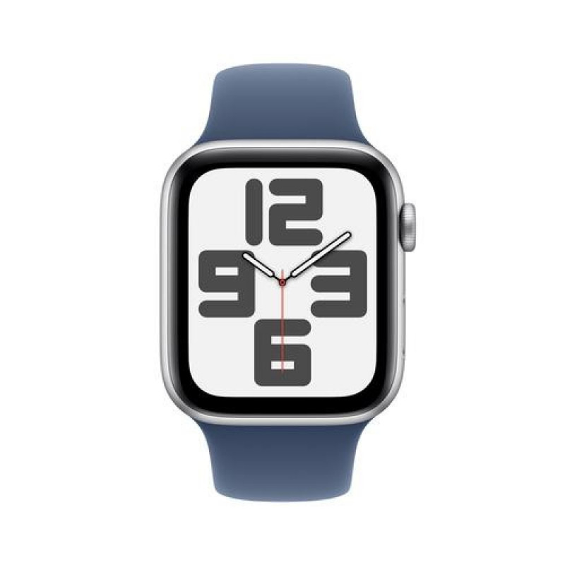 <b>A great deal to love.</b><br>Easy ways to stay connected. Motivating fitness metrics. Innovative health and safety features. Fresh band colors. Apple Watch SE is packed with features at a feel-good price.Apple Watch SE GPS 44mm Silver Aluminium Case with Denim Sport Band - M/L. Display technology: OLED, Display resolution: 368 x 448 pixels, Touchscreen. Flash memory: 32 GB. Wi-Fi. GPS (satellite). Weight: 32.9 g. Waterproof up to: 50 m, Band material: Rubber, Band colour: Blue, Band size: M/L. Operating system installed: watchOS 11