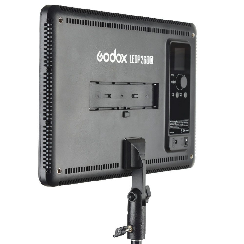 The Godox LEDP260C video light is a powerful LED light with an adjustable color temperature from 3300 to 5600K and a light output of 2200 lumens at half a meter away. With a wide opening angle, the LEDP260C from Godox provides a nice soft lighting for photography and video. With the included tripod adapter, the lamp can be placed on practically any lamp tripod. This LED lamp is ideal for macro photography, photojournalism, product photography, video recording and much more.