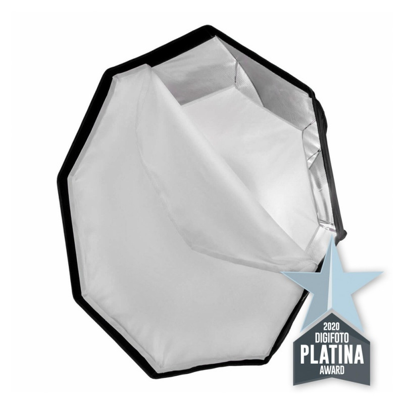 The octabox has a robust design and is equipped with an integrated aluminium Bowens speedring. Special support rods attached to the umbrella mechanism keep the octabox tight.