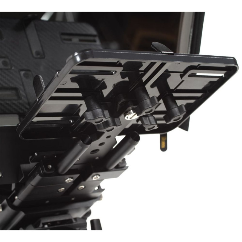 This tablet teleprompter is suitable for tablets up to 9 x 13 inches. The kit includes the ELITE-Remote remote control.