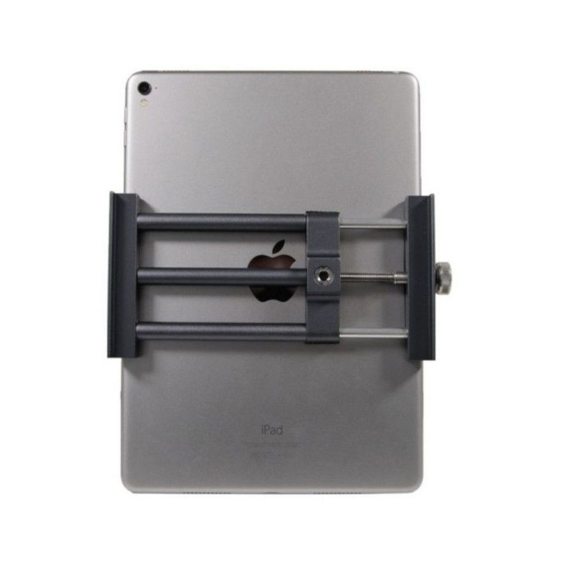 Its easy adjustment to fit most sized tablets on the market also makes it very adaptive to frequent changing tablet sizes in a production environment. The adjustment knob can tighten down to add additional security if the tablet is used in vibrating situations like in a car. It's lined with a protective non slip rubber which helps to hold it securely in place.