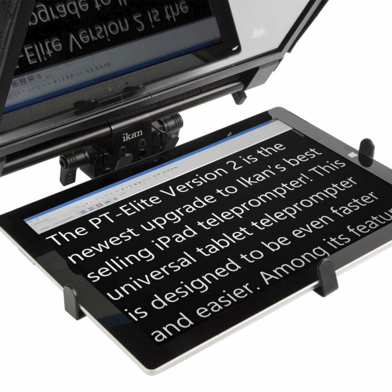The Ikan PT-ELITE-PRO teleprompter is especially suitable for larger tablets, such as the Apple iPad pro, Microsoft Surface and larger Android tablets. Turn your tablet into a professional teleprompter quickly and easily.
