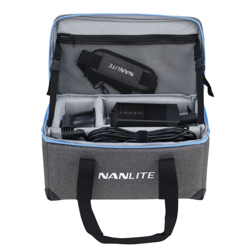 Komplekti kuulub: Valgusti kaitsekorgiga, peegeldi, toiteadapter, Bowensi adapter AS-BA-FMM (3771) ja kandekott.