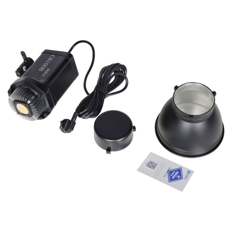 1x CS100B LED lamp; 1x Reflector; 1x Power cable (4m); 1x Protection cap; 1x Warranty card; 1x Service card