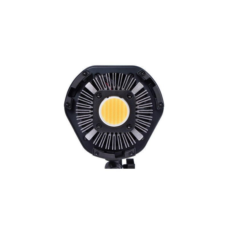 • Lots of light: the 100-watt LED lamp provides as much as 3,600 LUX at 1 meter distance. The light is infinitely adjustable from 1 to 100%. The color temperature is also infinitely adjustable, from 2700K to 6500K. The light quality measures up to the premium brands in the market, with a CRI of 96 and a TLCI of 98. So the light is just right, for any professional production. The LED lamp is also a lot lighter than comparable brands, despite its robust metal housing.
