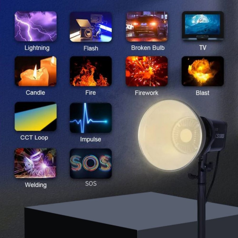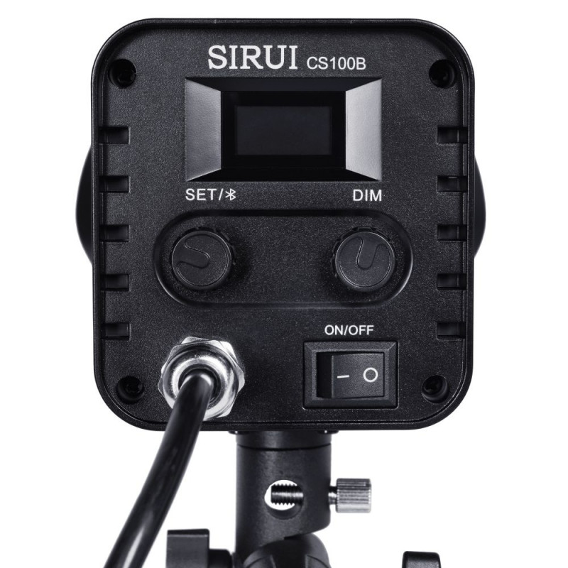 Operation Sirui CS100B: The clear display and push-and-turn knob give you full control over all settings. For added convenience, a free smartphone app is also available, which allows you to control all options via Bluetooth up to a distance of 15 meters. Even from multiple lights in a group. There are 12 fun themed effects built in.Practical use Sirui CS100B: You have the freedom to attach the CS100B to any lamp stand using the spigot connector. You do so using the bracket that attaches to the lamp. This bracket also allows you to rotate the lamp 360 degrees, in every conceivable position. The metal rotary knobs on the side lock the chosen position. The bracket also features a hole, through which an umbrella can be inserted. The CS100B comes with protective cover, reflector and power cable (4m long).Power supply CS100B: Connecting to a wall socket is of course possible. And that worldwide, because the LED lamp supports 110V-240V.Reliability & Warranty