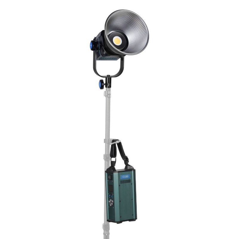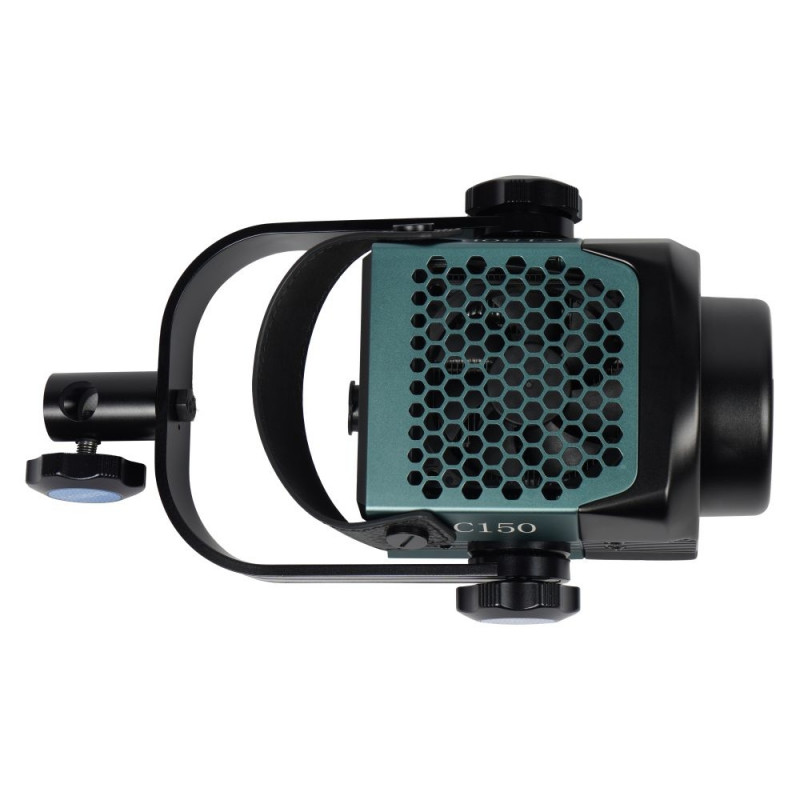 • Lots of light: the 150-watt LED lamp provides as much as 7,000 LUX at a distance of 1 meter. The light is infinitely adjustable from 1 to 100%. The C150 has a fixed color temperature of 5600K (daylight). The light quality rivals the premium brands in the market, with a CRI of 96 and a TLCI of 98. So the light is just right, for any professional production. The LED lamp is also a lot lighter than comparable brands, despite its robust metal housing.