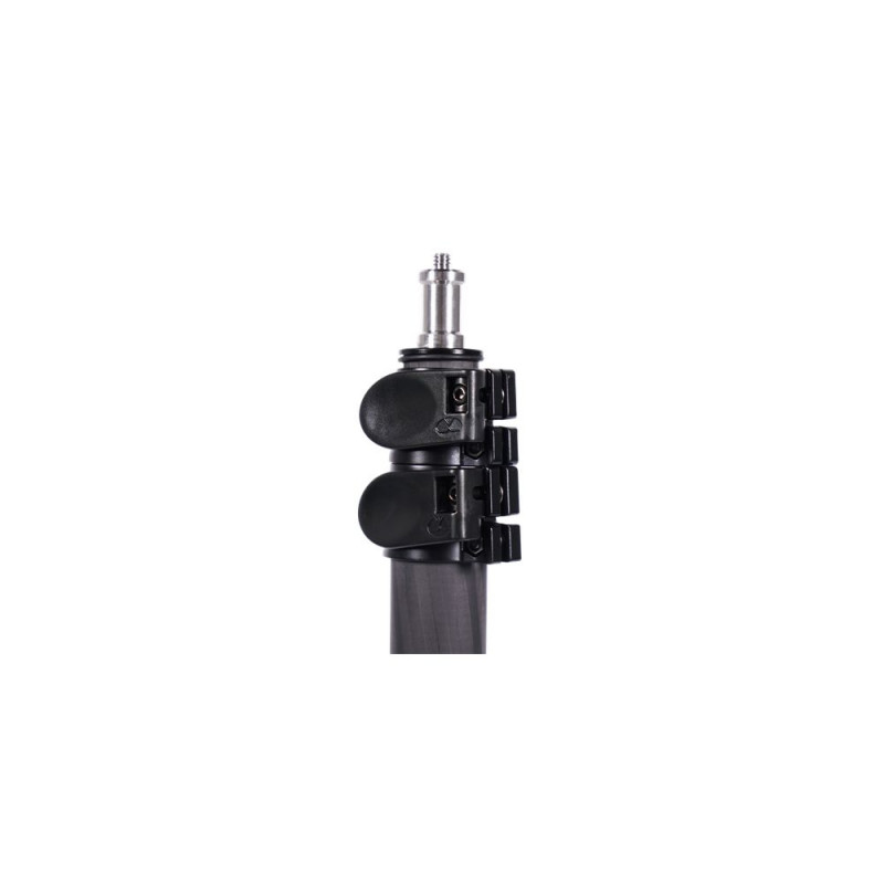 This ultra-light DK28 carbon tripod from Sirui is easy to take anywhere. This is due - besides its light weight - to the very compact way you fold it. On location, the DK28 is sturdy and robust. The use of sturdy metal connecting parts makes it safe for any production. The tripod is extendable between 86 cm and 280 cm. The spigot connection on top has a 1/4" male thread. Thus, the tripod supports virtually all equipment.