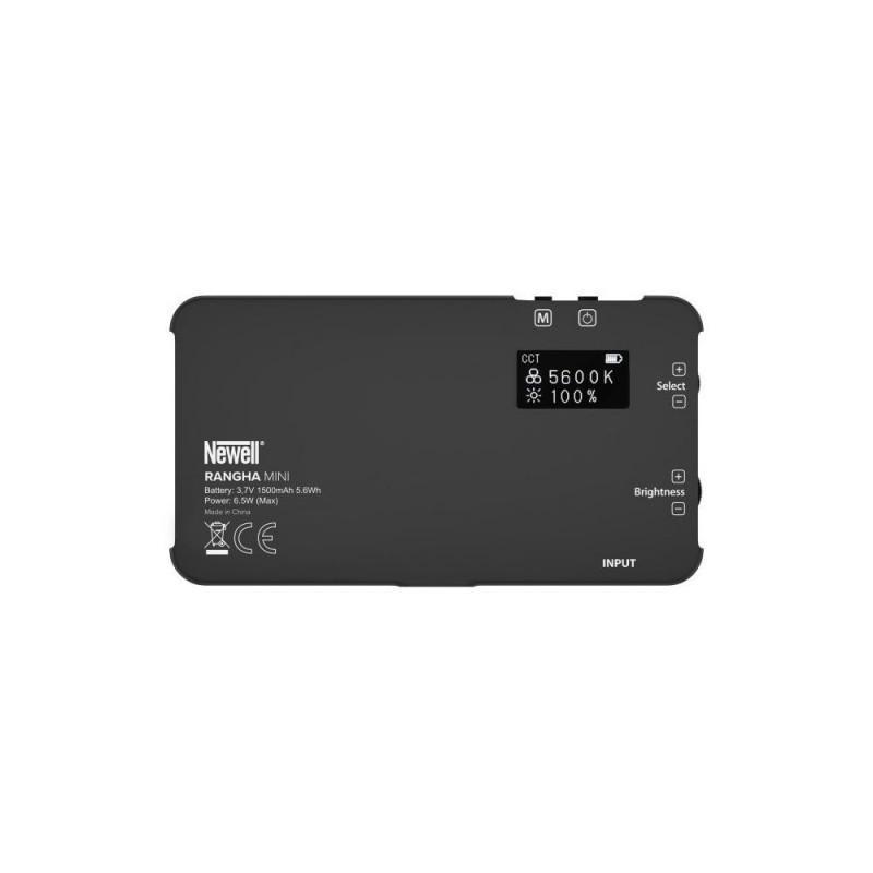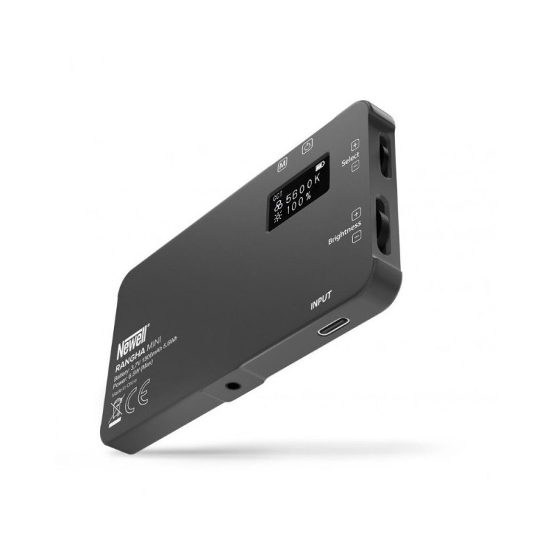 The Newell RGB-W Rangha Mini is a compact LED panel measuring 11 cm by 6 cm. Despite its small size, it offers high brightness that will work well in the world of film and photography. The wide range of color temperature adjustment (2500 – 9900 K) allows you to achieve both warm and cool light tones. Full control over the HSI color space gives users unlimited possibilities to express their creativity through color. There are also 21 special effects on board. Intuitive operation is provided by ergonomic dials and buttons, as well as a backlit OLED screen. You’ll also find a standard 1/4″ thread on the lamp’s metal housing and a USB-C port. A cold shoe adapter is included for mounting on a camera or camcorder.