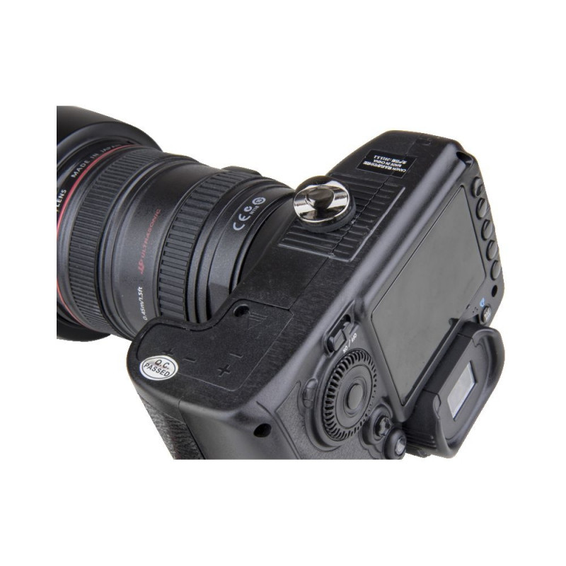 The metal captive screw fits directly into the base of a camera via the 1/4”-20 screw. A black rubber pad is also equipped on the 1/4” screw to keep camera equipment from being scratched.Warning: Last items in stock!