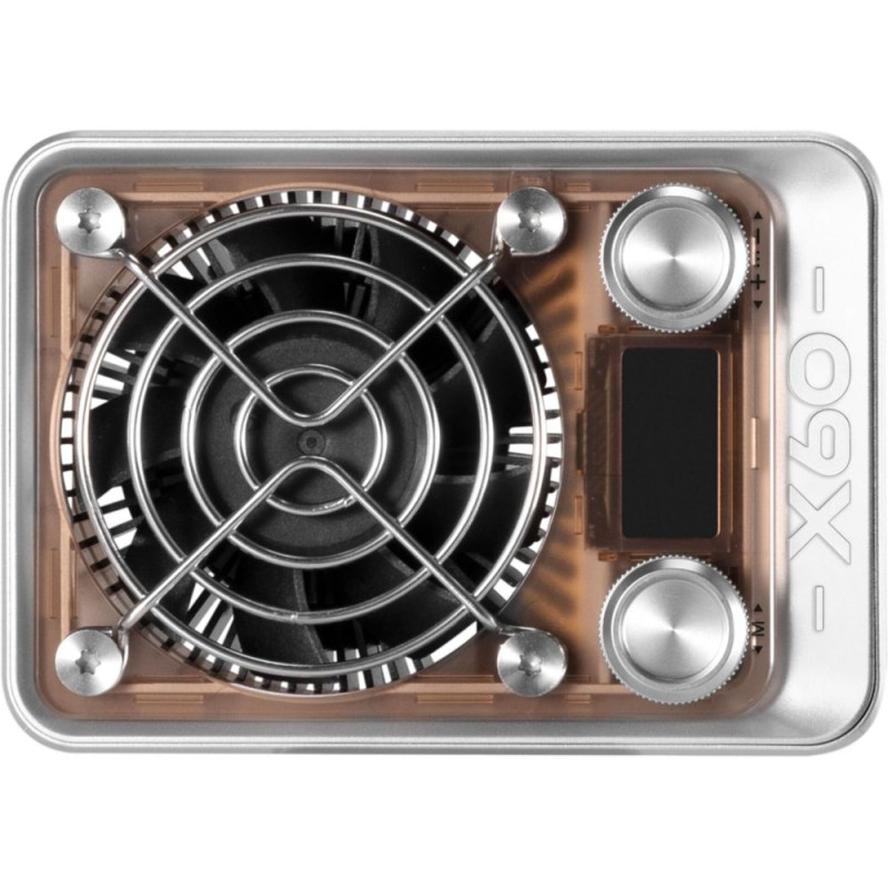 - (The X60 battery, designed as a handle, is switched on and fully charged.)