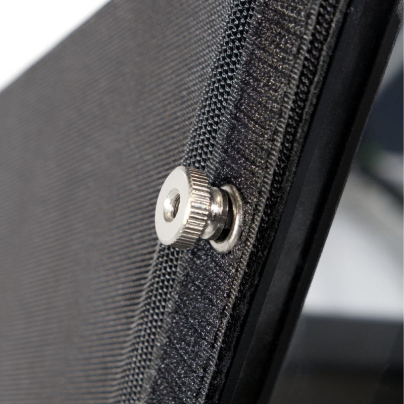 The three included riser plates allow precise adjustment to different camera heights - whether DSLR or studio camera. The sturdy base made of anodised aluminium and carbon fibre rods provides a secure hold and easy assembly. Thanks to the VESA mount, the monitor can be safely attached and quickly replaced if needed.