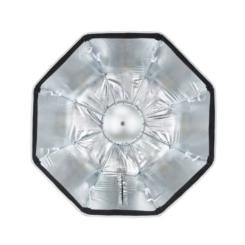 Turn your softbox into more than just a soft light source. The reflective silver interior boosts light output, while the optional diffuser plate creates classic beauty dish lighting with bright catchlights. Attach the diffuser to reduce the beam and control light distribution.