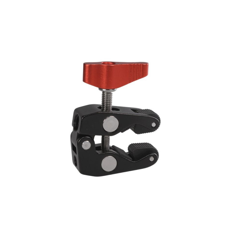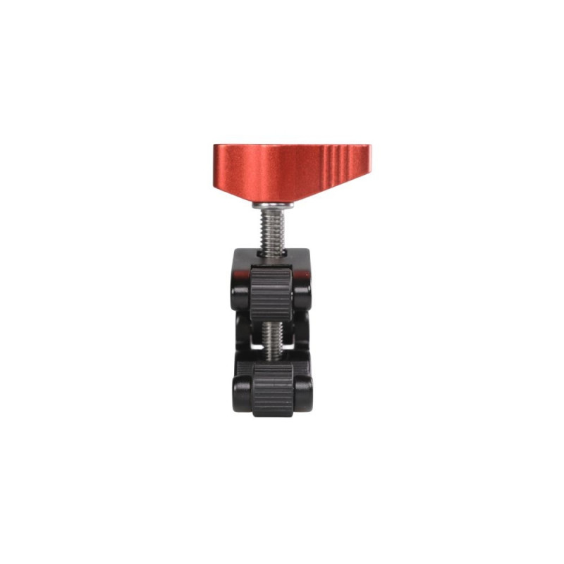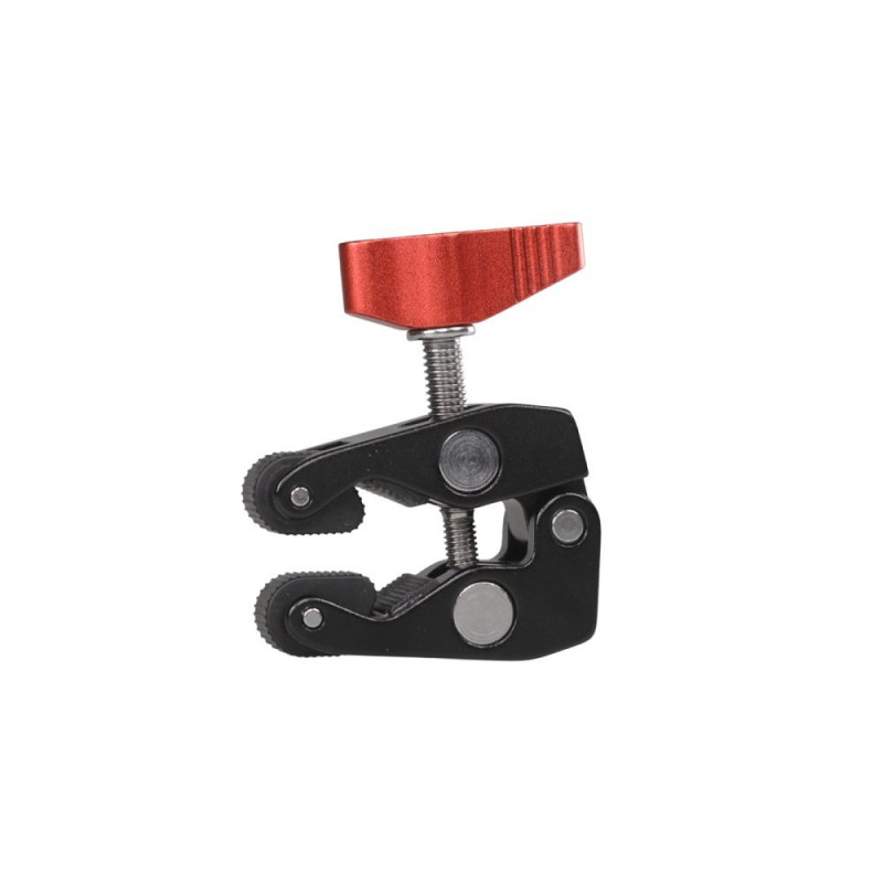 Stabile Schraubklemme aus Metall mit 2 Bohrungen, um Zubehör einfach zu befestigen.