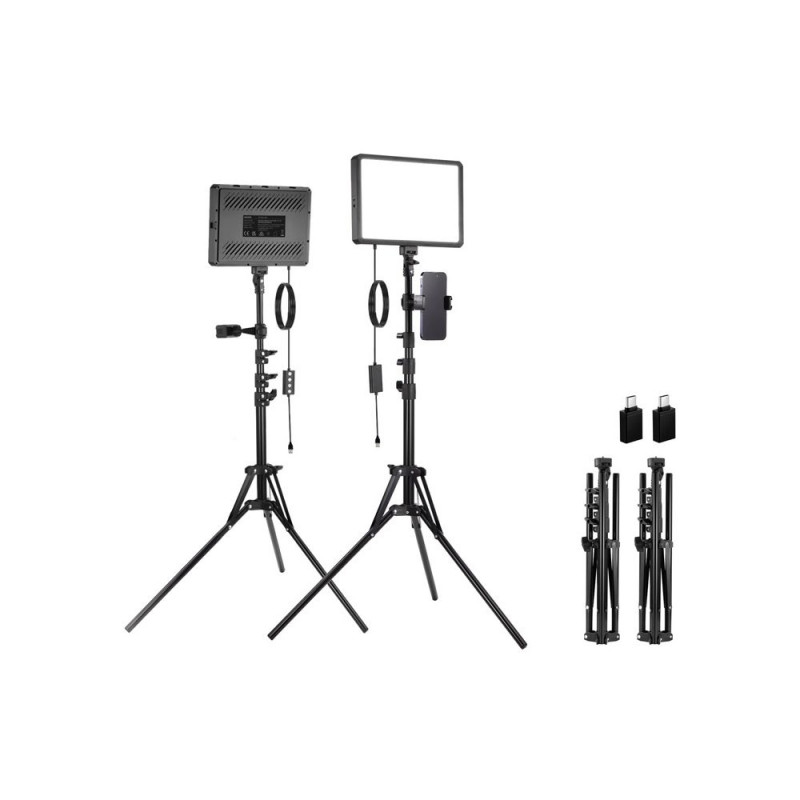 Neewer BP300 studio set two LED lights + tripods + phone holders