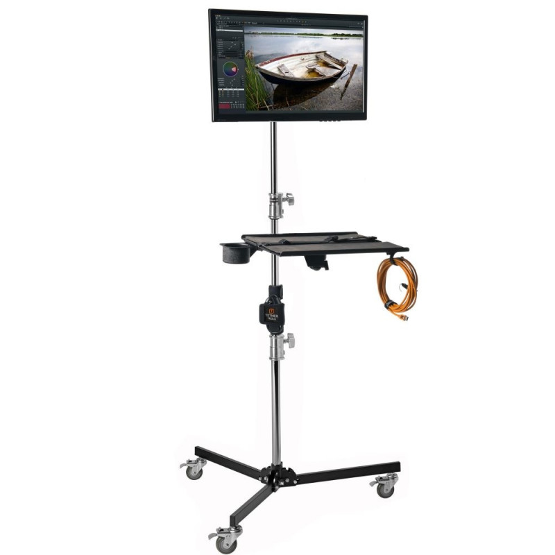The Rock Solid Low Boy Roller Stand from Tether Tools is designed to be used with a Tether Table Aero, creating a mobile laptop workstation for tethered photography. It is ideal for both studio environments and on-location shoots.