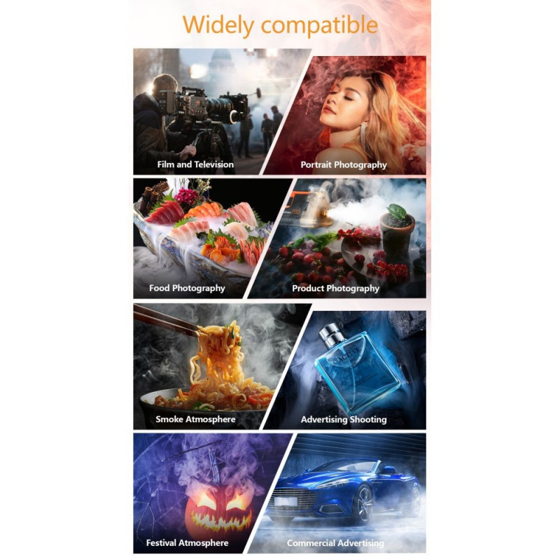 With three adjustable power settings, you can tailor the smoke density to any moment. Whether you’re after a soft haze or a dramatic fog effect, the Smoke Master Pro delivers instantly — no warm-up time required. At 40W, it runs for up to 110 minutes, while 100W gives you around 40 minutes of continuous use. That’s plenty of smoke for short sessions or full-day shoots.