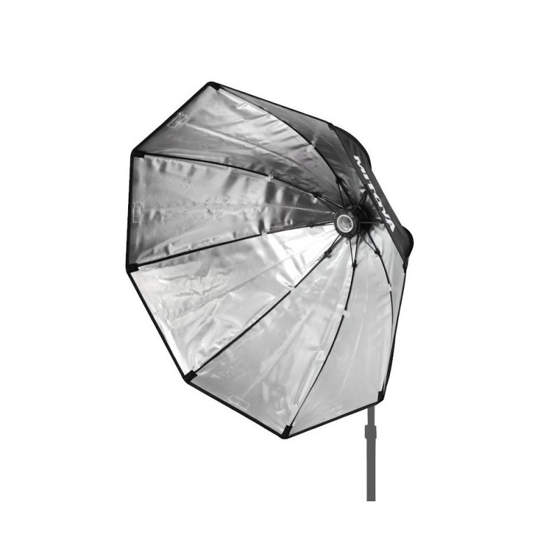 The MITOYA SIMPLE softbox has a diameter of 70 cm and features an integrated E27 lamp holder. It is designed to provide soft, evenly diffused light, making it suitable for photography and videography.