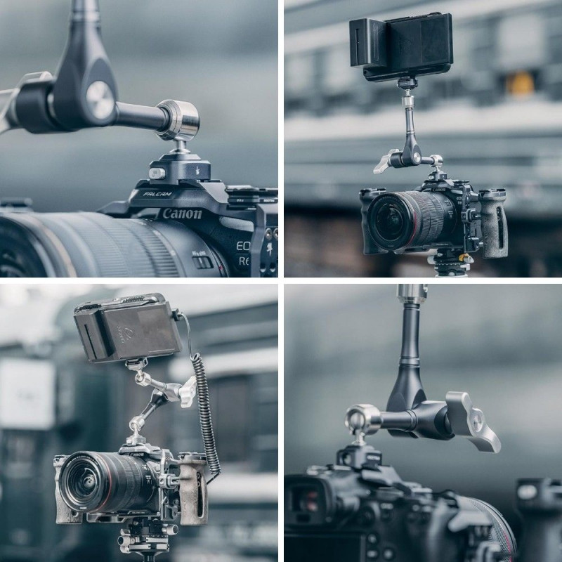 The Ulanzi FALCAM F22 quick-release magic arm is 7 inches long and supports a maximum load of 3 kg. It features a sturdy aluminum construction with 1/4'' threads and a 360-degree rotation capability for versatile positioning.Warning: Last items in stock!