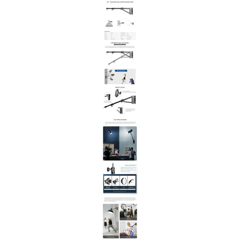 Key features of the StudioKing Wall Boom FTB-700B- Wide range of movement: rotates up to 180° left, right, forward and backward.