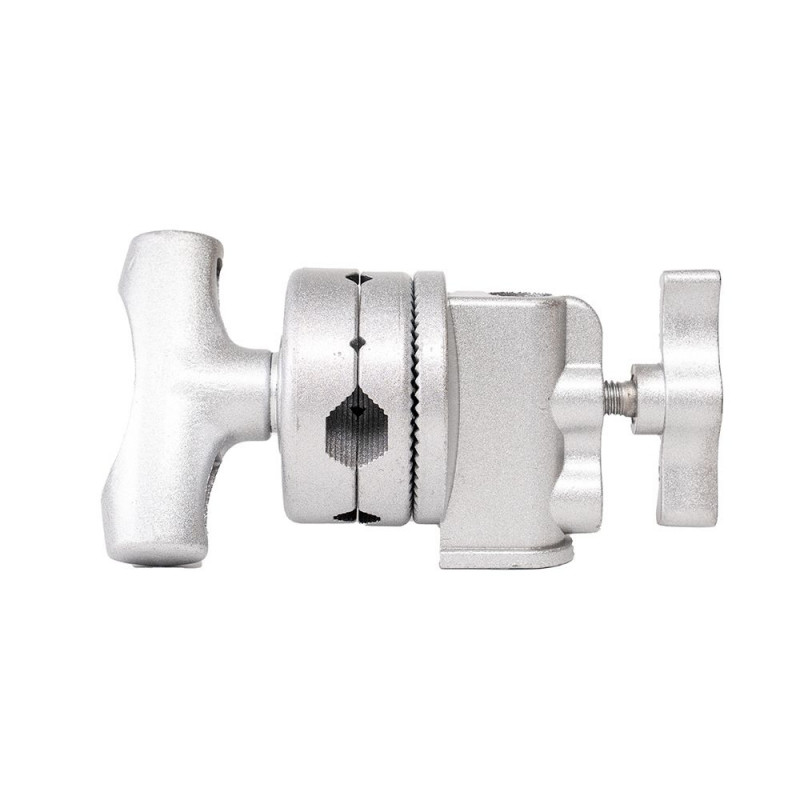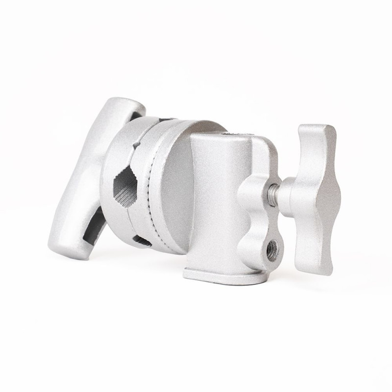 The Caruba Grip Head Silver is a versatile tool for securely attaching and positioning accessories in your studio or on location. The Grip Head Silver can be mounted on a standard spigot. Easily attach your reflectors, flags, diffusion cloths or extension arms and rotate them to the exact angle you want.
