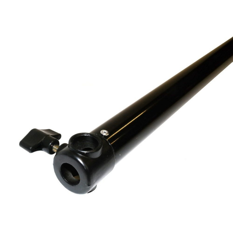 The Caruba Crossbar is a telescopic support for hanging backgrounds, adjustable from 79 to 200 centimetres. It can hold backgrounds weighing up to 3 kg and is designed to be used with tripods featuring spigot connections.