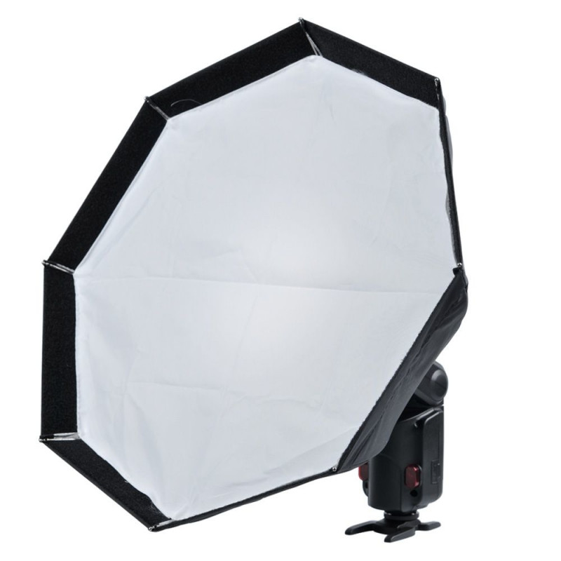 - 480mm diameter softbox with a silver reflective interior for enhanced light output.