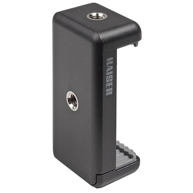 This holder helps you mount your smartphone securely on a stand or any compatible mount with a 1/4" thread, so you can align your shots precisely. The rubberised quick clamp holds devices from 55 to 90 mm wide and keeps them reliably in place. The integrated cut out allows easy access to side buttons. Three 1/4" threads give you flexibility for portrait or landscape format as well as photo, video and communication applications.