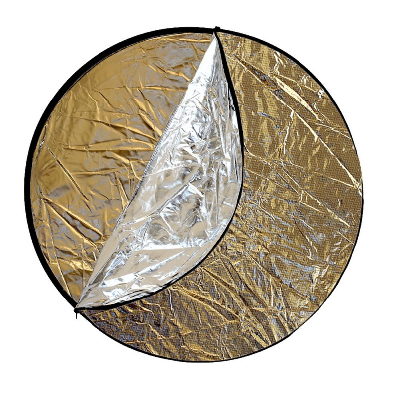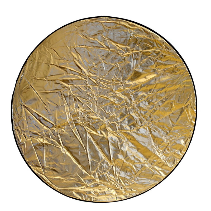 The Falcon Eyes CRK-32 SLG 5 in 1 Reflector is a standard diffuse reflector supplied with a removable cover. This removable, zip up cover is reversible and equipped with 4 different colours: white, gold, silver and sunny gold. The reflector has a diameter of 82cm and can be folded and packed away in the supplied carry bag.