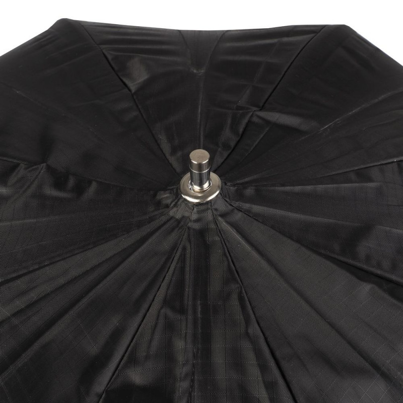 Experience the versatility of the extra-large Falcon Eyes Softbox Umbrella (brolley), a budget-friendly alternative to the traditional softbox. Perfect for any on-location photoshoot, this softbox umbrella offers a convenient and efficient solution. While traditional softboxes can be cumbersome to carry and prone to damage, this softbox umbrella stands out for its quick pop-up design. This makes it more durable while still being compatible with almost any flash. With its stylish black exterior and reflective silver interior, this softbox umbrella delivers perfect indirect/reflective light for your professional photos.