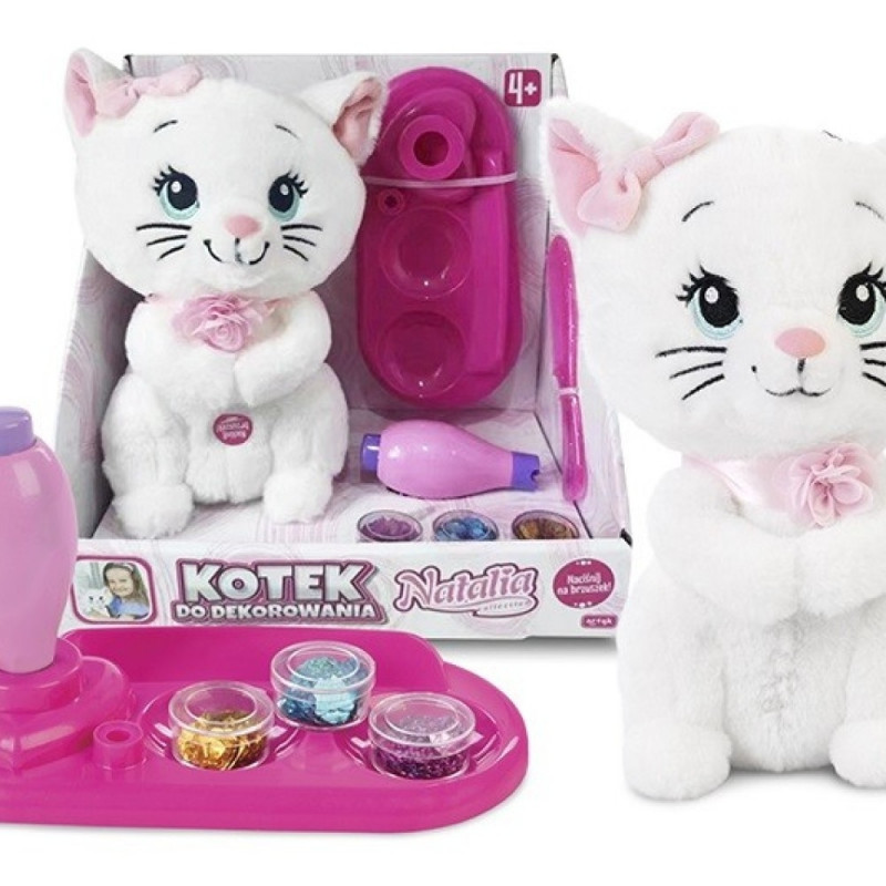 Become the stylist of the adorable Decorating Cat from Natalia Collection and decorate its soft fur with shimmering embellishments!
