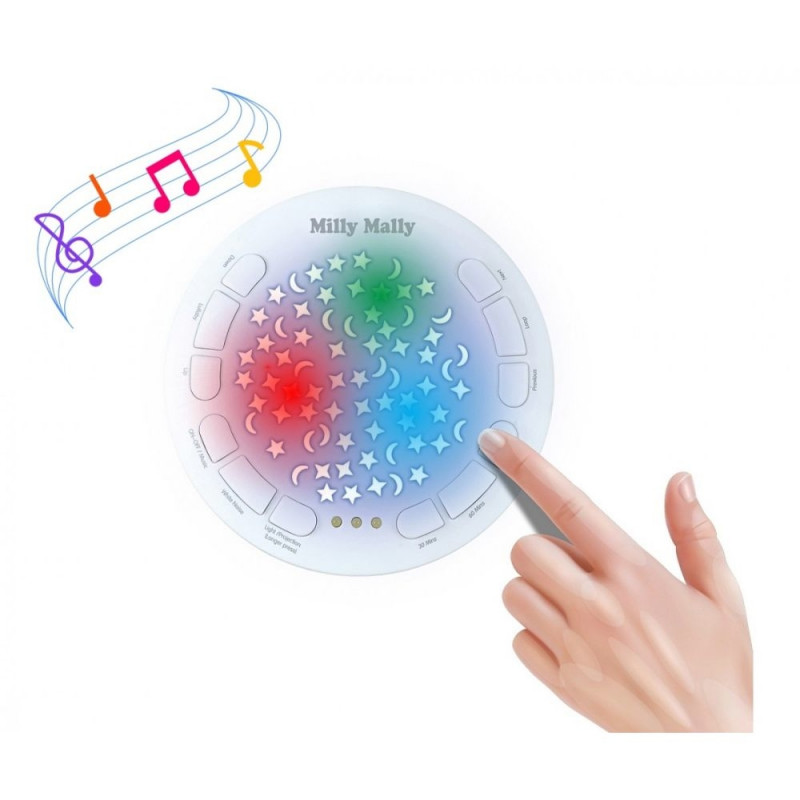 The Milly Plush Toy with Projector is an indispensable aid for parents, helping to calm and lull babies to sleep. When the Milly projector is turned on, it plays 10 lullaby melodies selected at random while simultaneously projecting a night sky.