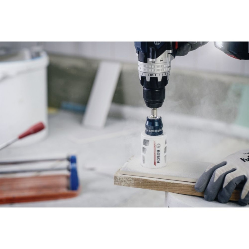 The Power Change Plus System offers more robustness and precision than its predecessor. Its reinforced shank provides improved tolerances, creating less play and greater accuracy. Additionally, it enables better guidance, due to its pilot drill bit. Its unique keyless system only requires one simple click to unplug the hole saw, offering fast and easy plug ejection. Use this system as a keyless connection between power tools and hole saws. It is suitable for use with all corded and cordless drill drivers.