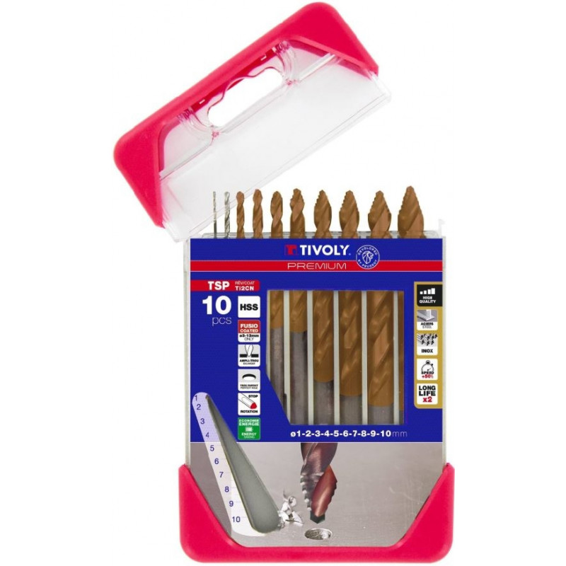 Tivoly Smart Point FUSIO Metal Drill Bit Set – 10-Piece Ø 1–10 mm, FUSIO-Coated HSS, Tri-Flat 5 mm S