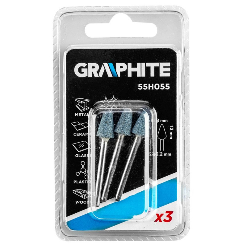 Kamień szlifierski stożek 8 x 12 mm, trzpień 3.2 mm, 3 szt.