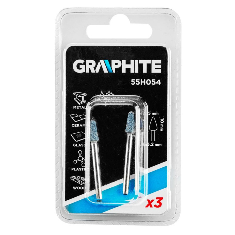 Kamień szlifierski stożek 5 x 10 mm, trzpień 3.2 mm, 3 szt.