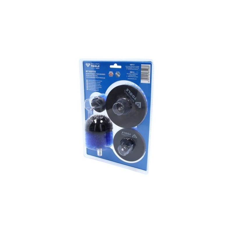 4-piece set<br>For cleaning tiles, carpets, glass, floors etc.<br>Use with cordless screwdriver or drill<br>Wear-resistant and heat-resistant<br>With 1/4' hexagon holder<br>The BRILLIANT TOOLS brush attachment set for drProduct has been archived
