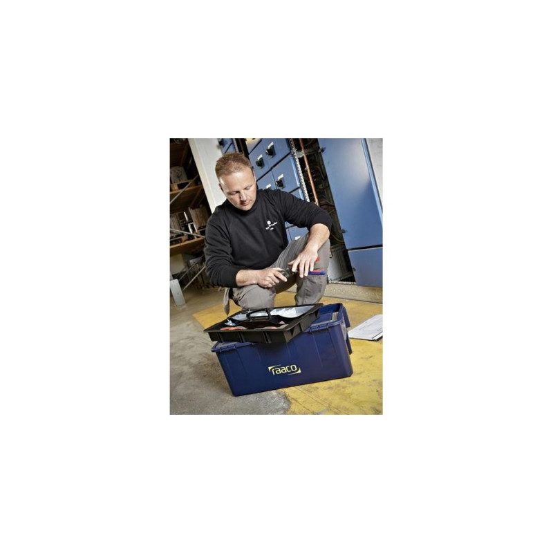 Compact 37 including 7 assorted inserts and dividers. Weight 3,7 KG. Toolbox made of polypropylene (PP). Flexible arrangement of compartments using inserts. Castors or a carrying strap can be fitted. (Available separately).raaco Compact 37. Product cProduct has been archived