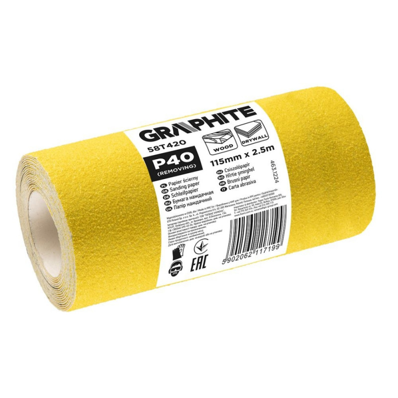 Papier ścierny żółty w rolce 2,5 m x 115 mm, P40
