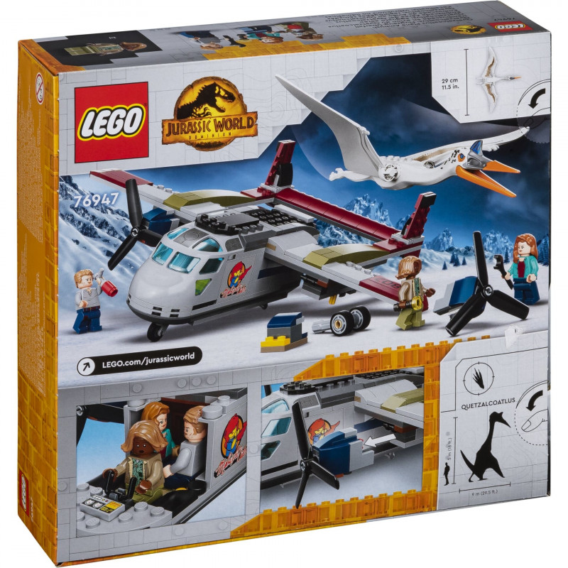 LEGO® Jurassic World Quetzalcoatlus: Plane Raid (76947)Features: Age recommendation: From 7 years Number of pieces: 306 Included in the set: Plane including cockpit for 3 minifigures, opening cargo hold and engines, rotating propellers, three minifigProduct has been archived