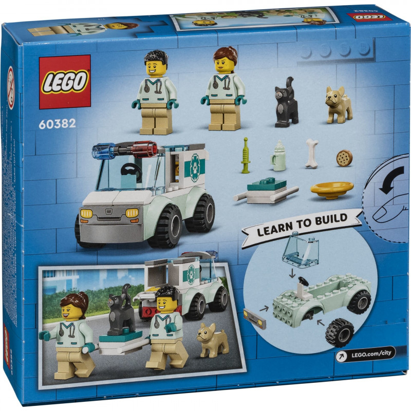 - Set contents: building blocks for an animal rescue truck, plus 2 vet minifigures, a dog, a cat and detailed accessories such as a feeding bottle, a toy syringe, a food bowl and bones