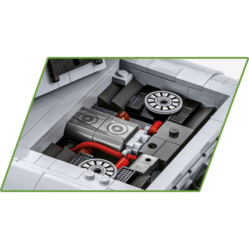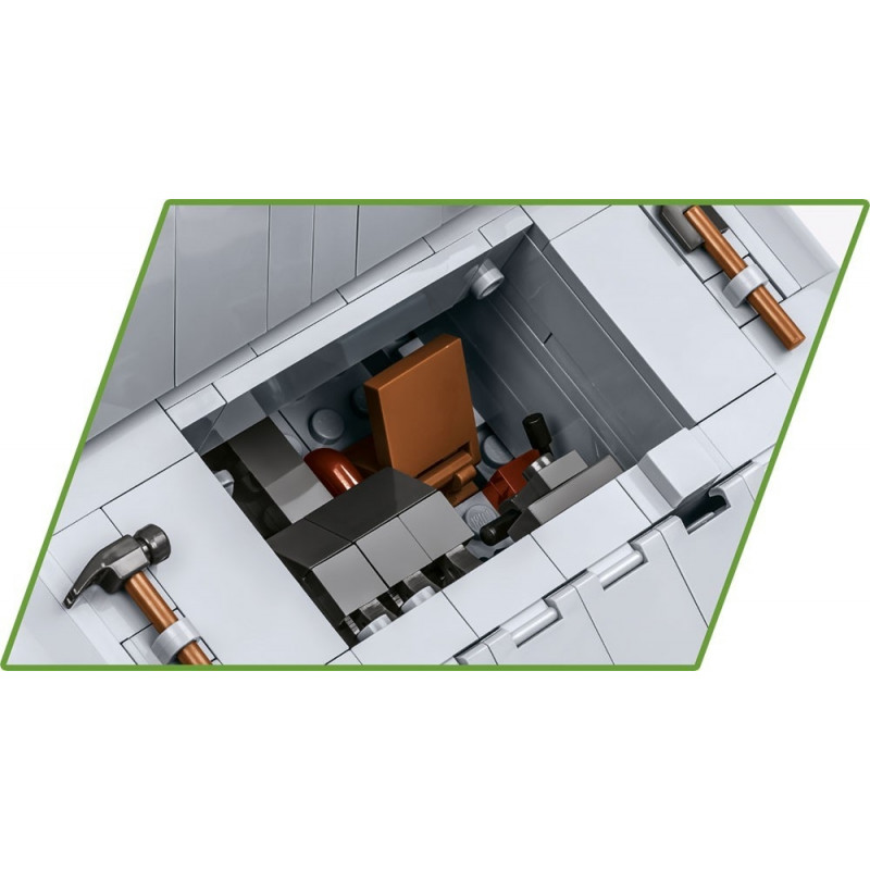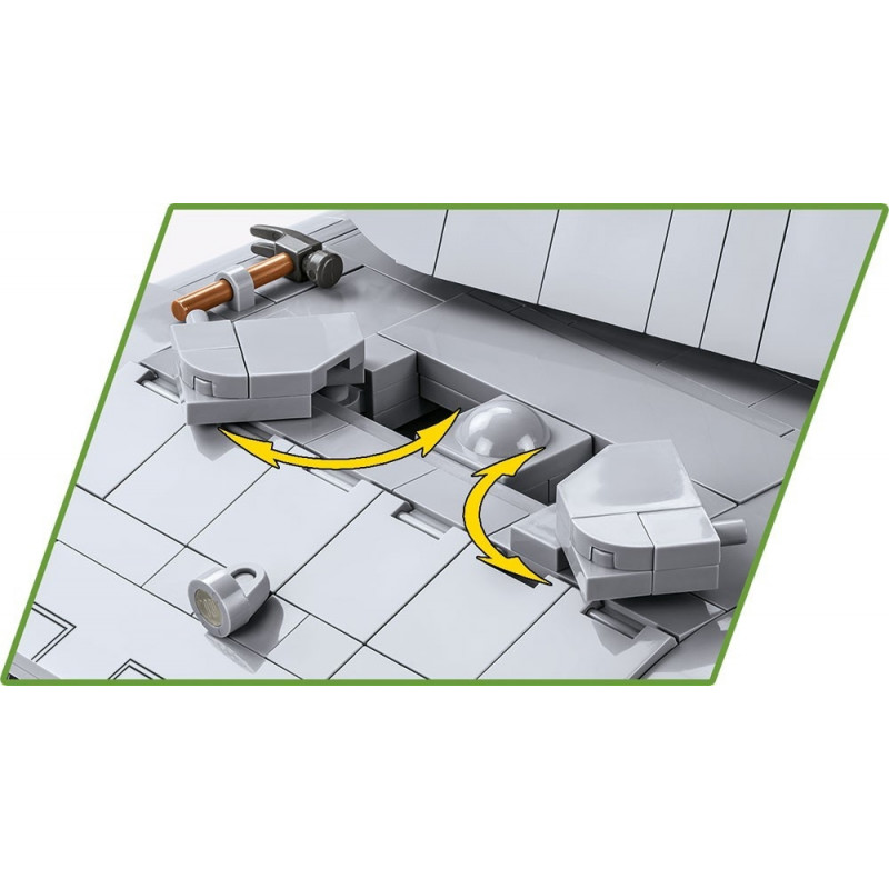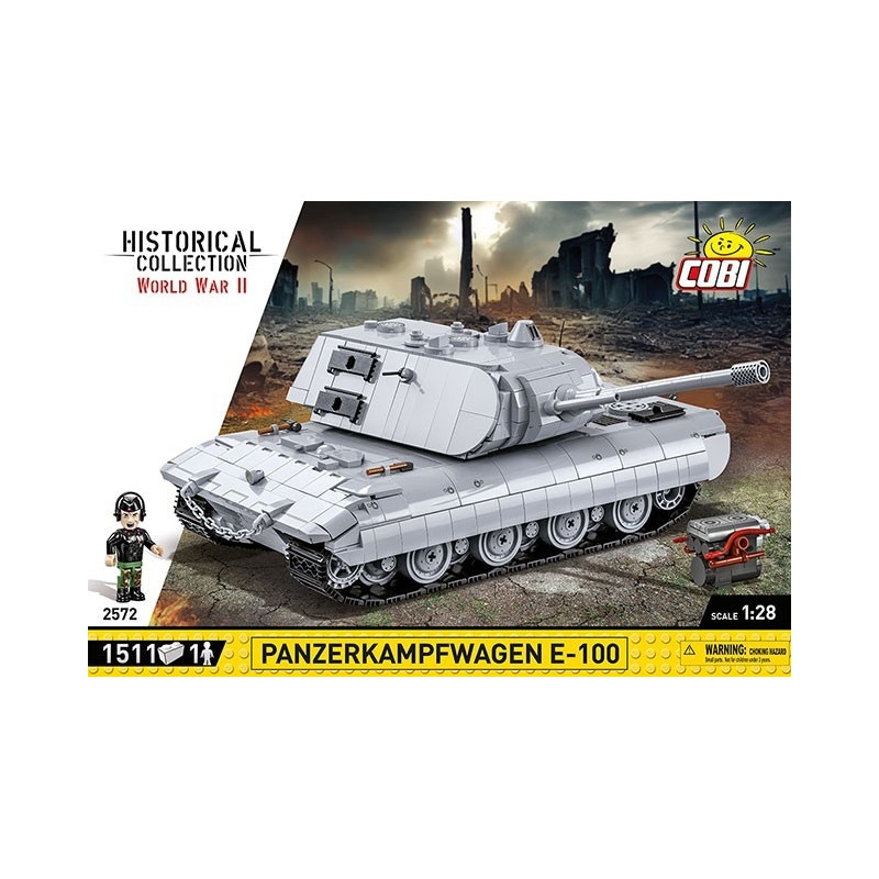 The PANZERKAMPFWAGEN E-100 was developed in the large 1:28 scale using 1511 elements and measures 37 cm in length. The large size of the model made it possible to design the interior of the turret and the vehicle. The model offers access to the service hatch, under which there is a removable engine. Additional functionalities include a rotating turret, movable cannon, access to hatches for the crew and working tracks. The set also includes a very interesting figure of a tanker with a print on the back. Such a huge model will provide many hours of exciting construction and will become a dominant exhibit in your collection! Build history, piece by piece, with COBI!
