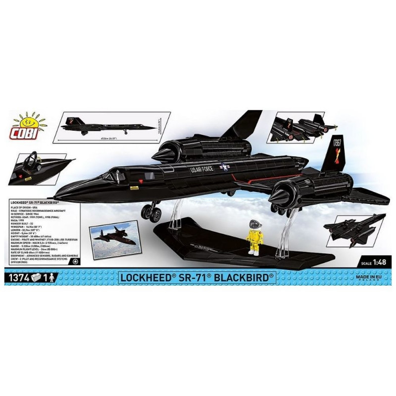 Dzięki intuicyjnej instrukcji budowa jest prosta i nie sprawi problemów mniej zaawansowanym budowniczym. Zestaw spełni oczekiwania miłośników lotnictwa, militariów i klockowych pasjonatów. SR-71 Blackbird będzie się doskonale prezentował zarówno u dorosłego kolekcjonera, jak i w pokoju nastolatka. Buduj historię z COBI!