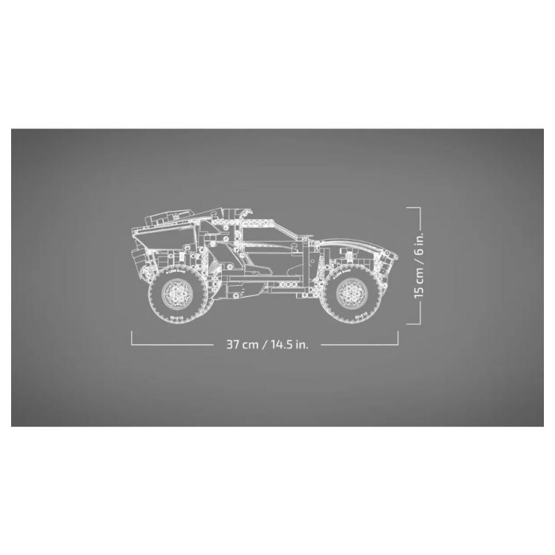 - Wymiary ten model LEGO Technic ma 15 cm wysokości, 37 cm długości i 19 cm szerokości