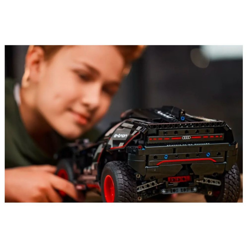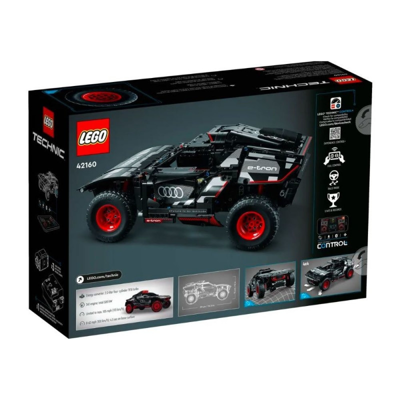Dzieci, które uwielbiają samochody rajdowe, mogą sprawdzić swoje umiejętności, budując ten model LEGO Technic Audi RS Q e-tron (42160). Budując, mogą poznać realistyczny samochód elektryczny, który Audi zbudowało, aby poruszać się w trudnych pustynnych warunkach Rajdu Dakar. Ten model zawiera wiele realistycznych detali, takich jak indywidualne zawieszenie każdego z czterech kół. Pojazd zawiera również nowy element koła Technic stworzony specjalnie dla tego modelu, aby odzwierciedlić pełnowymiarowe koła Audi.