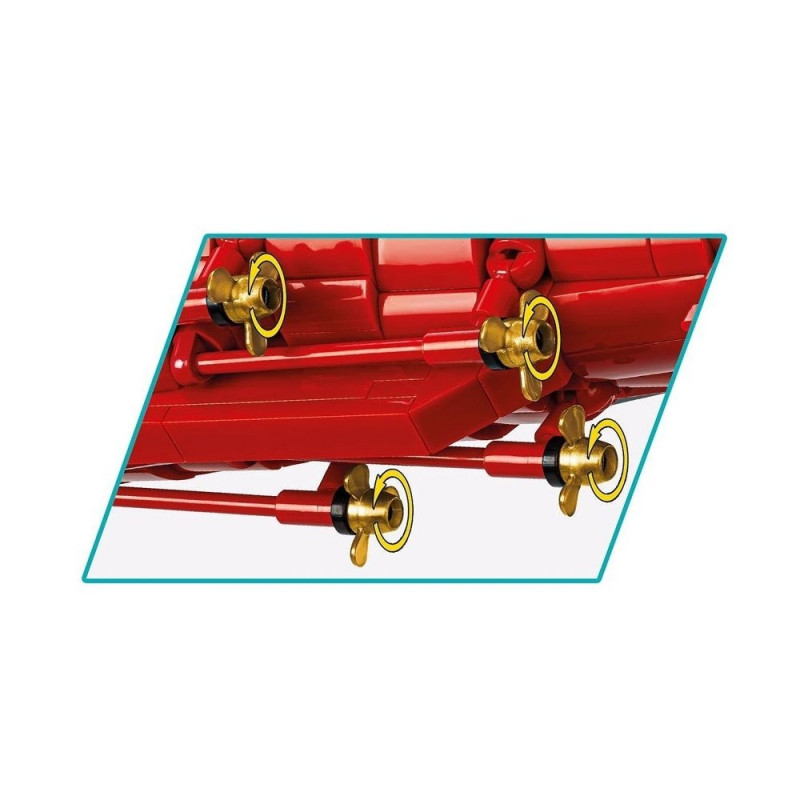 Ten wielki model polecamy głównie kolekcjonerom-weteranom oraz fanom klocków, którym niestraszne wielogodzinne budowanie!. Okręt nie wymaga sklejania ani malowania, ponieważ cała jego bryła i wszystkie elementy składają się z klocków konstrukcyjnych COBI z nadrukami. Dzięki intuicyjnej instrukcji podzielonej na etapy proces budowy jest prosty i przejrzysty. Ze względu na ponad 3500 elementów gwarantujemy wielogodzinny proces budowy zwieńczony naprawdę spektakularnym efektem!