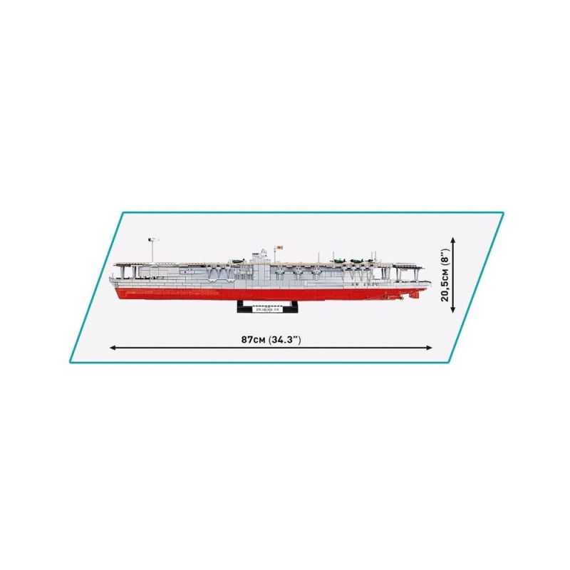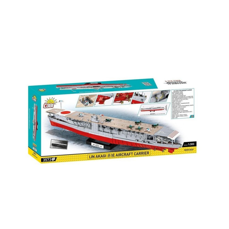 Model okrętu stworzony przez firmę COBI został wyprodukowany w skali 1:300. Składa się z 3573 elementów i ma aż 87 cm długości. Dzięki zastosowaniu najnowszych dostępnych elementów oraz zaawansowanych technik konstrukcyjnych model możliwie wiernie oddaje proporcje historycznego okrętu i zachowuje jego wszystkie istotne elementy. Bardzo ciekawym rozwiązaniem konstrukcyjnym są dwie ruchome windy samolotowe, które możemy podnosić i opuszczać. Lotniskowiec Akagi posiada liczne ruchome części takie jak: śruby napędowe, stery, obracane wieże i lufy dział, które można podnosić i opuszczać. Na pokładzie lotniskowca może możemy ustawić 5 dołączonych do zestawu kolorowych mini samolotów z nadrukami! Zestaw zawiera także bardzo stabilną i estetyczną, czarną podstawkę ekspozycyjną z tabliczką, na której jest nadrukowana nazwa oraz skala okrętu.